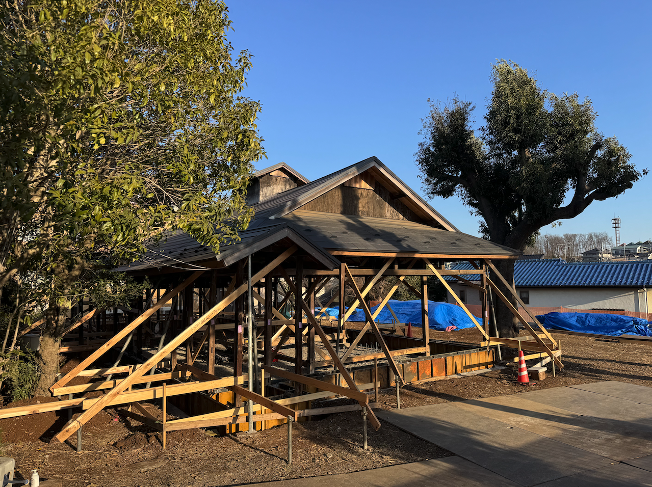 柱と屋根だけが立ち、これから少しずつ、この場所の風景が生まれていきます。